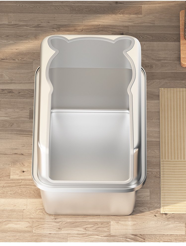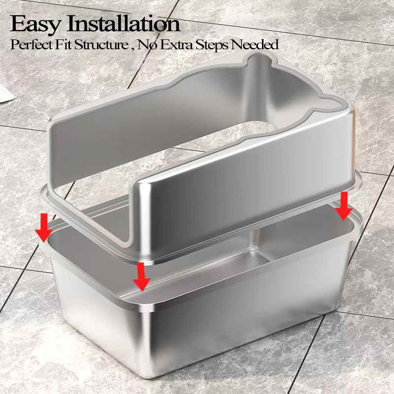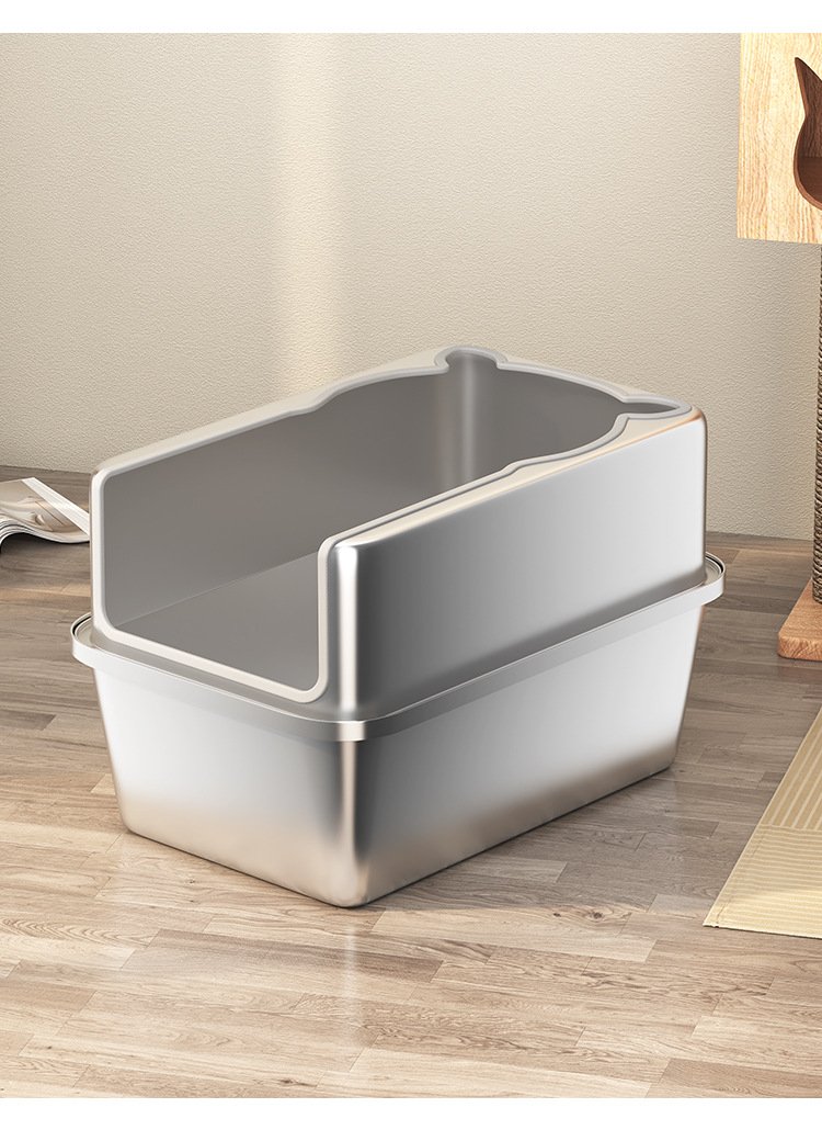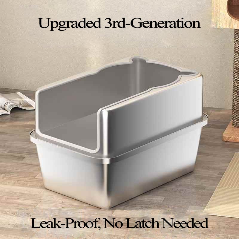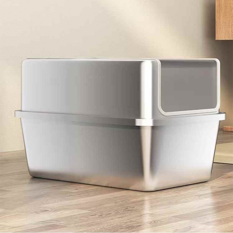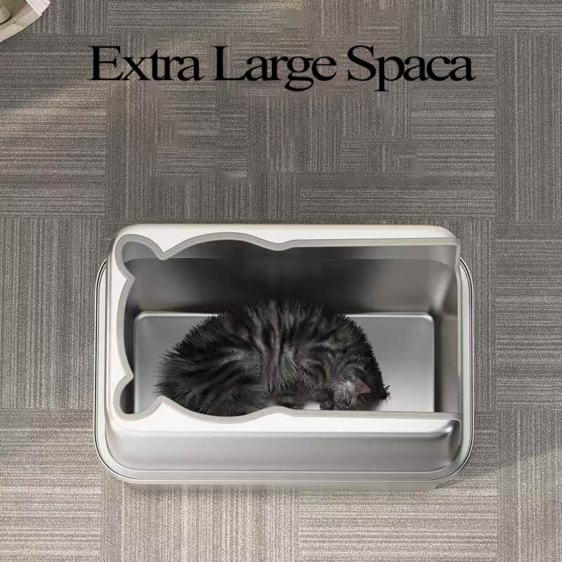 Meet your cat’s new favorite spot: a semi-open, seamless stainless steel litter box built for hassle-free care. No locks needed—its 3-second snap-free setup gets you ready in an instant.Crafted from 100% rust-proof stainless steel, the seamless design blocks all urine leaks (no more sticky, smelly plastic!) while the smooth surface wipes clean in seconds. The semi-open top balances privacy for your cat and fresh airflow to banish odors.Sturdy, pet-safe, and mess-proof: this litter box checks every box for easy, long-lasting cat care.